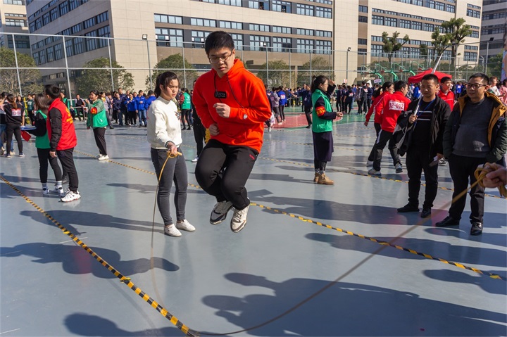 8字跳繩是非常考驗團(tuán)隊合作的比賽項目,每支團(tuán)隊都配合得十分默契,讓跳繩的節(jié)奏保持在恰到好處上,只見一條長繩像彩虹般飛舞起來,繩子打在地上發(fā)出“啪,啪”的聲音,繩影閃閃,此時比賽中的選手們臉上的表情由緊張變成激動。