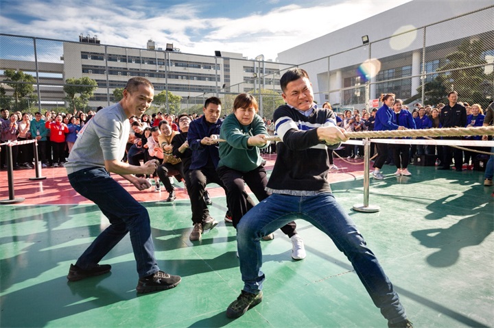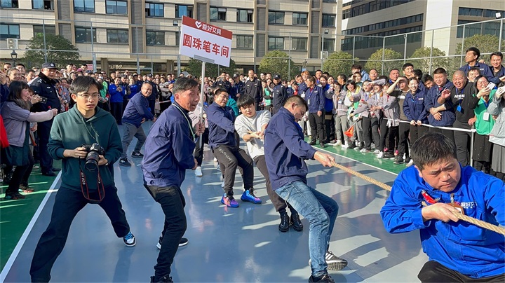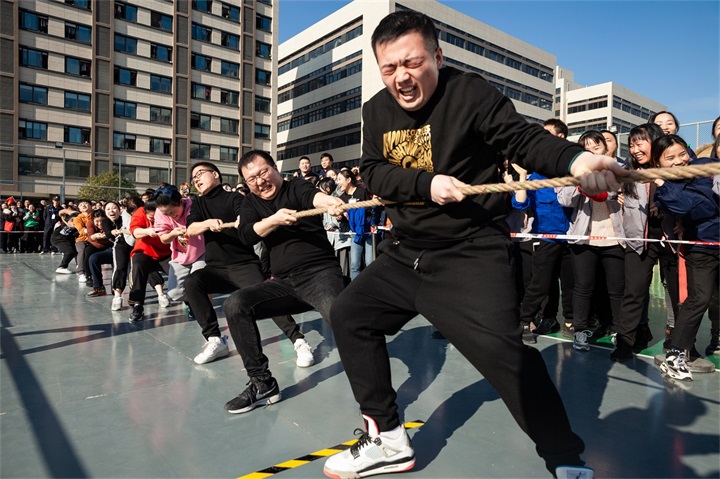 拔河是全場最具看點的項目,也是占分最重的一場比賽。這是一場力量的較量,是一場團(tuán)結(jié)與堅持的角逐。每一支團(tuán)隊都不甘示弱,裁判員一聲令下,選手們就使出全力,握緊手中的粗繩,馬步下蹲,不讓分毫。