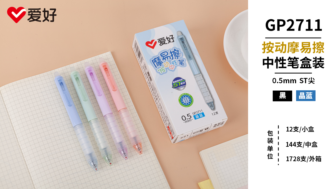 GP2711盒装  按动摩易擦中性笔盒装