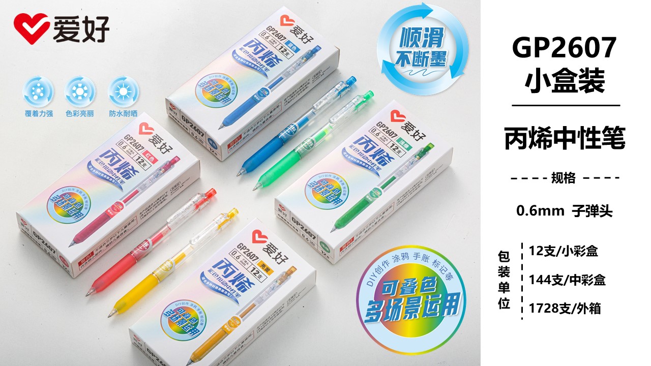 GP2607小盒装  丙烯彩色按动中性笔小盒装